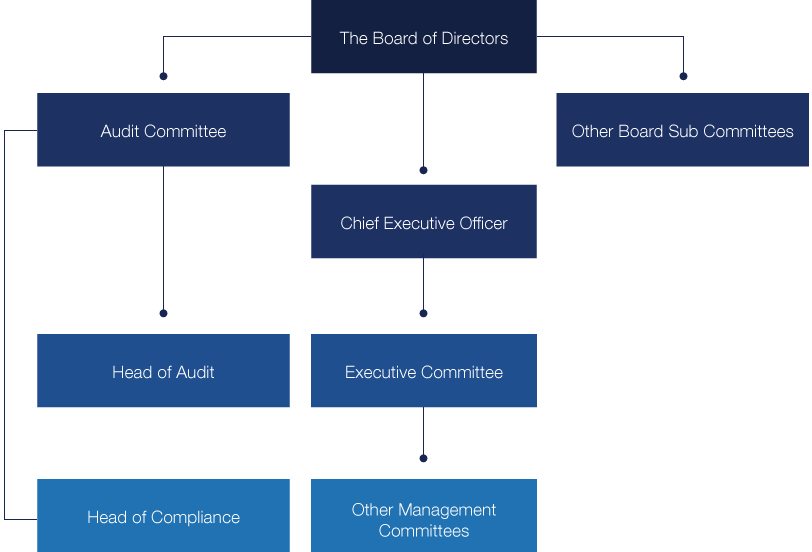 The Board of Directors is responsible for the overall direction, supervision and control of the Bank. Specific responsibilities of the Board include laying down and approving the business objectives of the Bank, approving strategies and policies which need to be pursued in order to achieve these objectives, and reviewing on an on-going basis the performance of the Bank in relation to its stated objectives as well as adherence to policies.